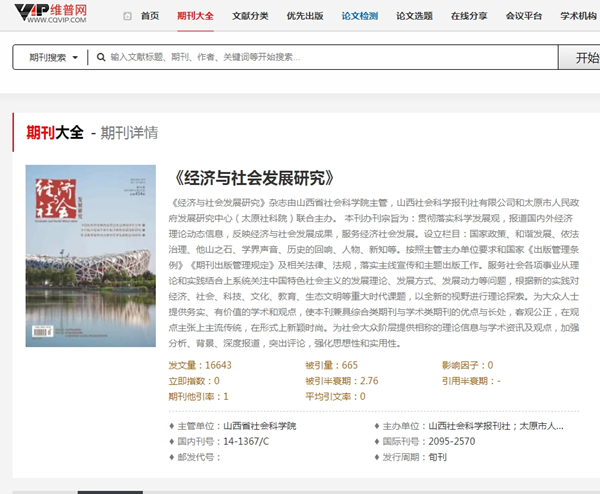 2、一本正規(guī)的期刊是必須在(知名數(shù)據(jù)庫)查詢的,而且經(jīng)濟(jì)與社會發(fā)展研究就是在(維普網(wǎng))可以查詢的。作者發(fā)表的文章都是在這里檢索的。所以大家如果評職發(fā)表論文可以放心安排。